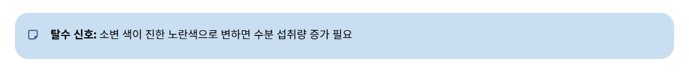 - 영유아/노인: 소변 양이 눈에 띄게 줄어든 즉시