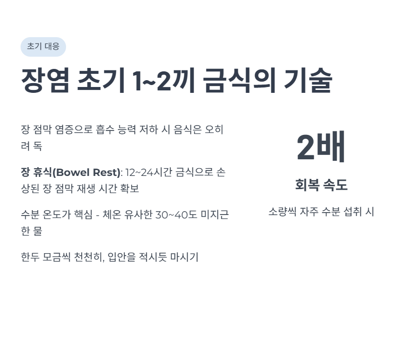 * 단순히 굶는 것이 목적이 아니라 '장 경련'을 최소화하는 것이 핵심입니다.